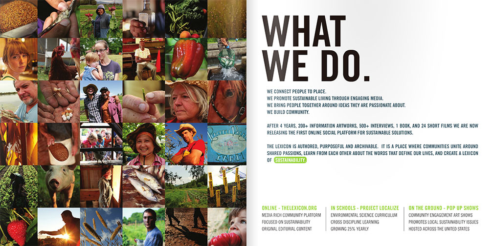 The Lexicon of Sustainability was a media company of award-winning storytellers focusing on awareness issues surrounding sustainability and food systems. Producers of the well known PBS series "Know Your Food", "Project Localize" a USDA sponsored education initiative, and "The Lexicon of Food" a community driven digital platform.